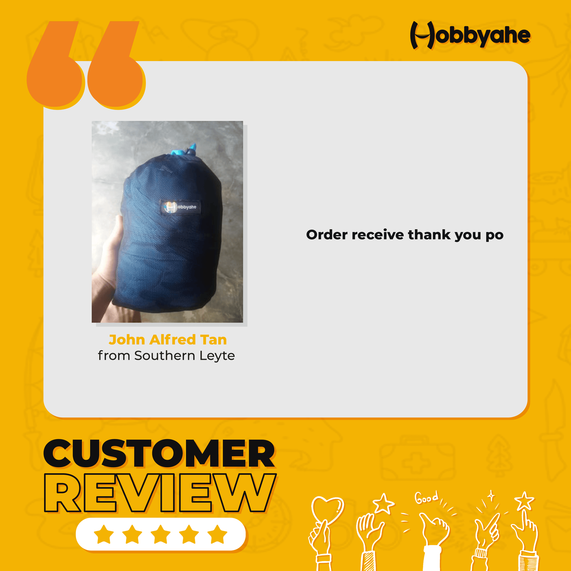 Got them po already😁😊😊 Thanks a lot❤️❤️❤️ my workmates are so happy with their hammocks💯Super happy po cla, they said that the price is super worth it. They never expected daw the quality, super nice ang quality. At sobrang happy ko kasi, malaki na ang name ko😁😁😁❤️❤️💯