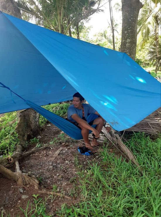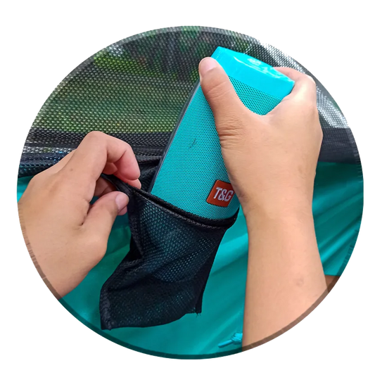 ❌ Do not leave your hammock outdoors on direct sunlight and rain for more than a week to avoid moisture & damage. When it's not in use, store it in a dry place using the net bag.