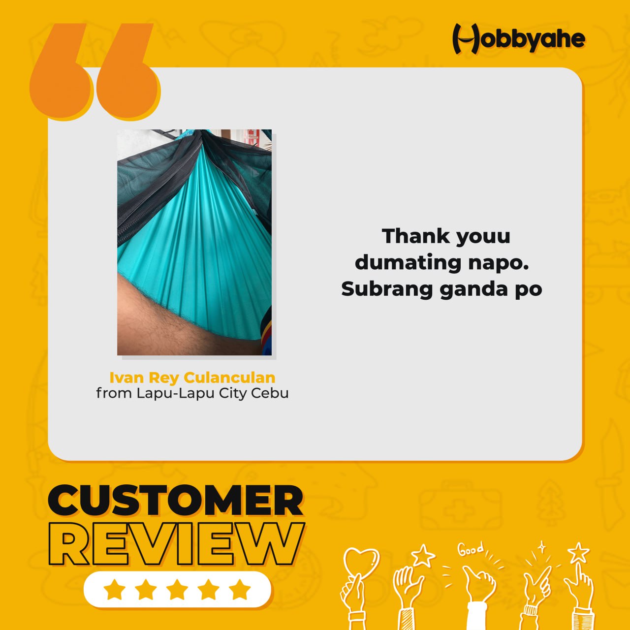 Very satisfied customer here po 💚 .. Excited na po ako sa akong dagat tambay with the hammock Maraming salamat po.